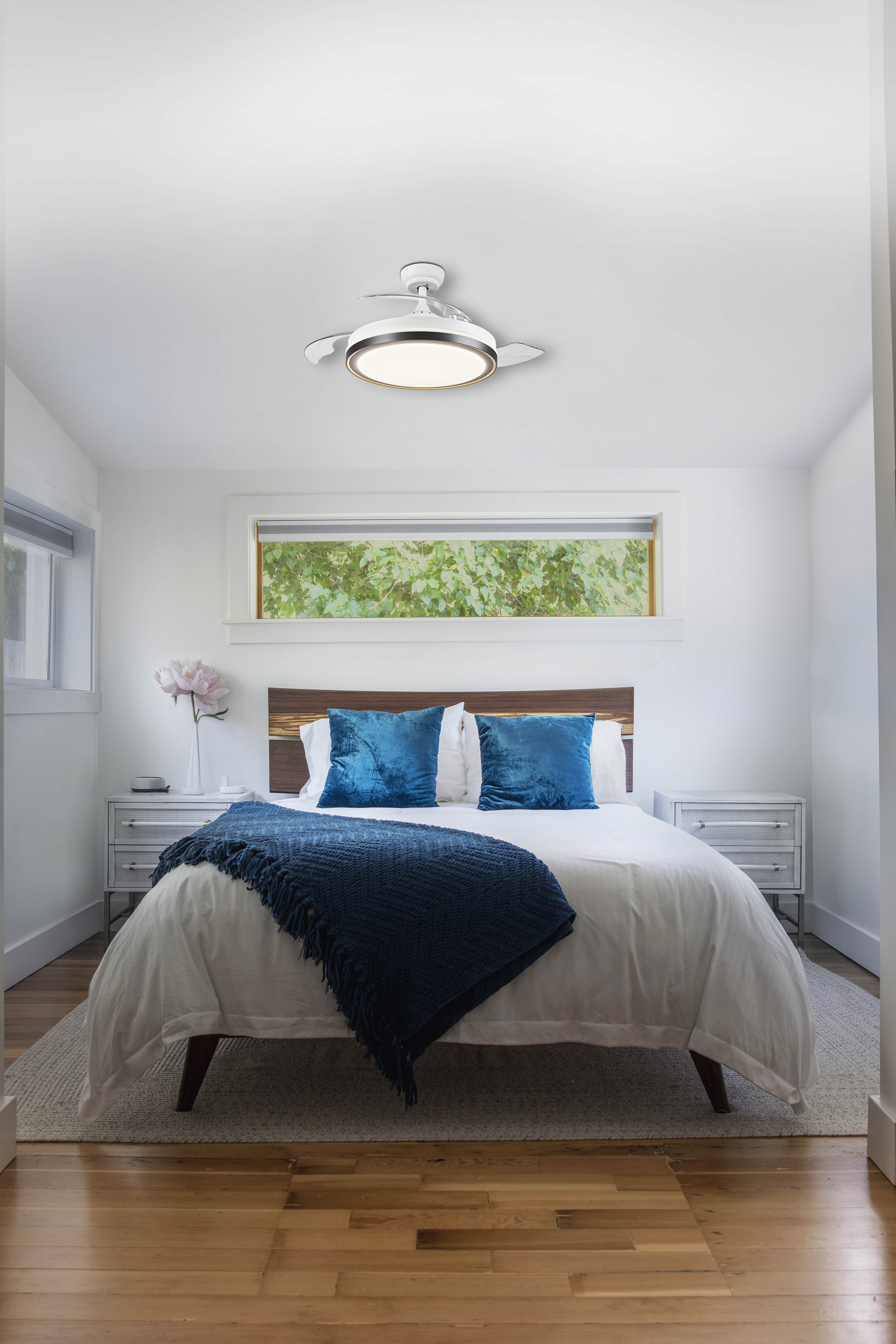 • Blades not visible when turned off, which creates aesthetic appearance of a pendant luminaire