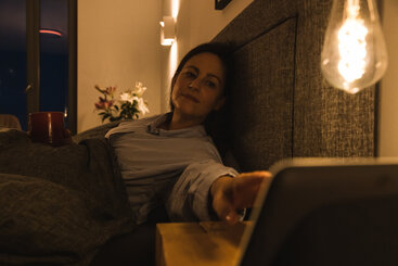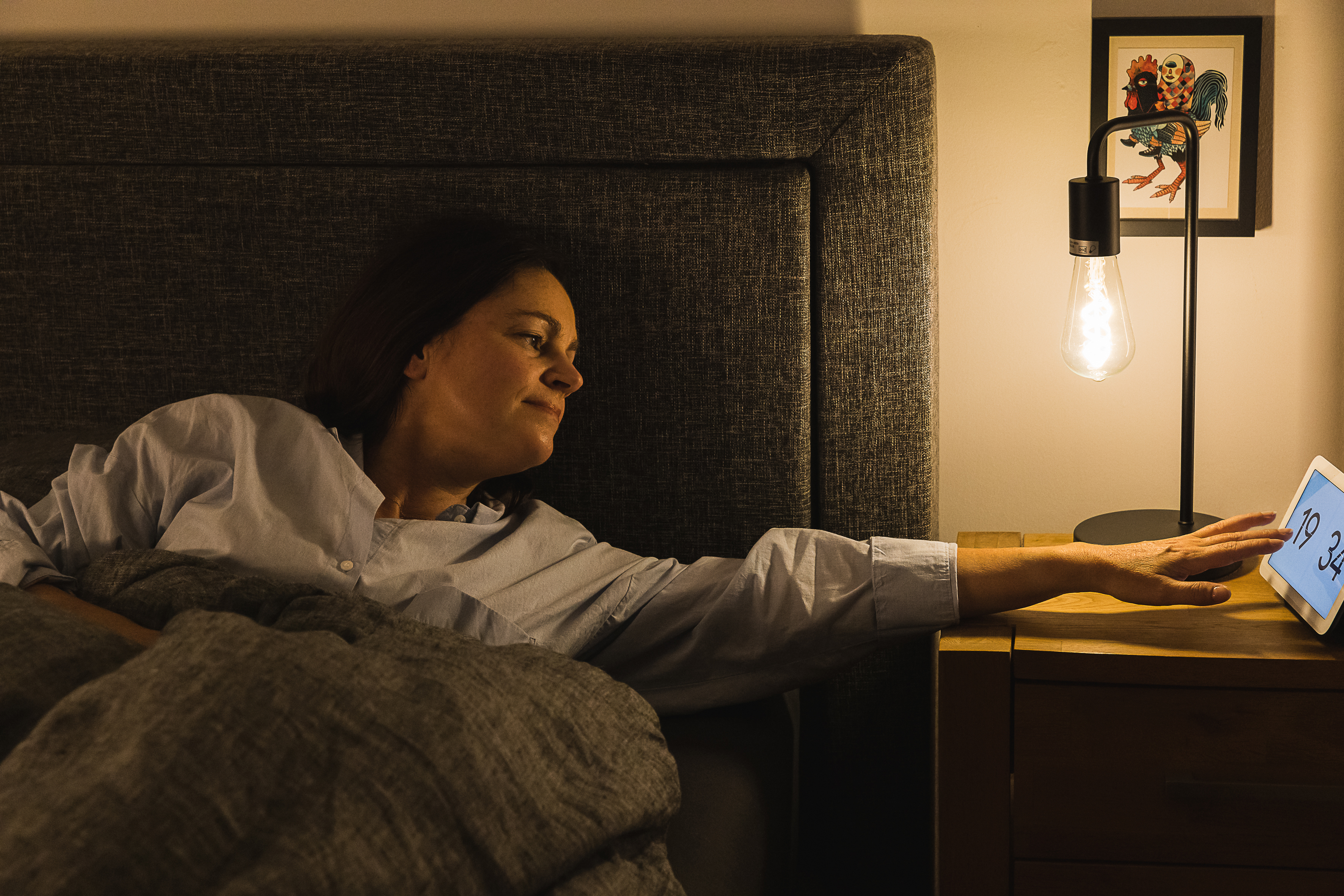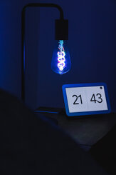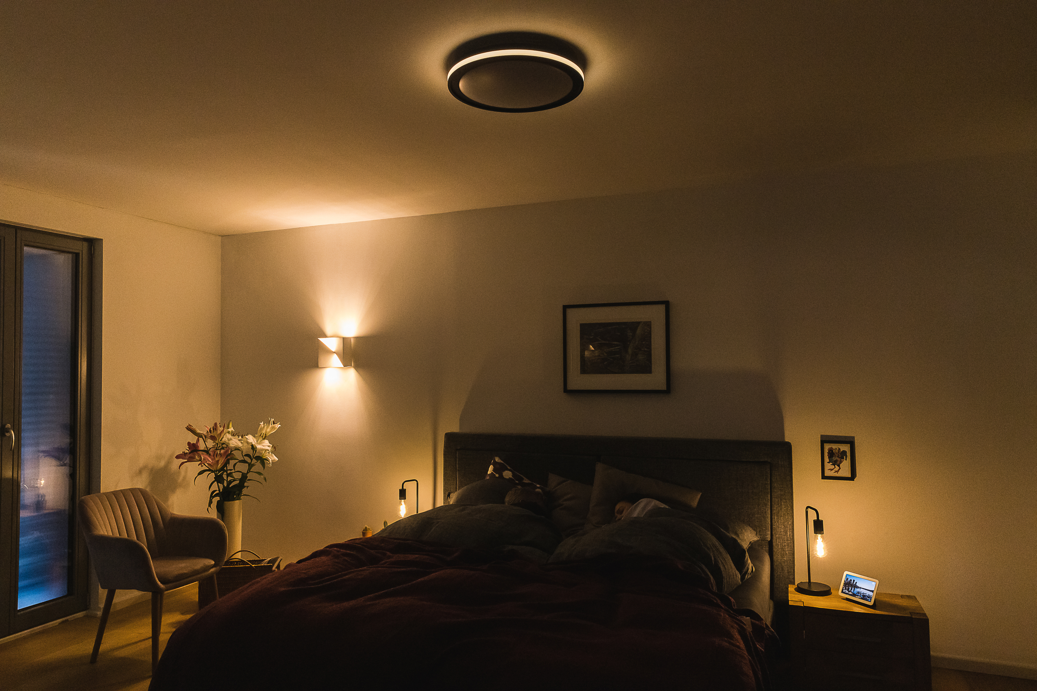 Smart WIFI illuminated bedroom with couple