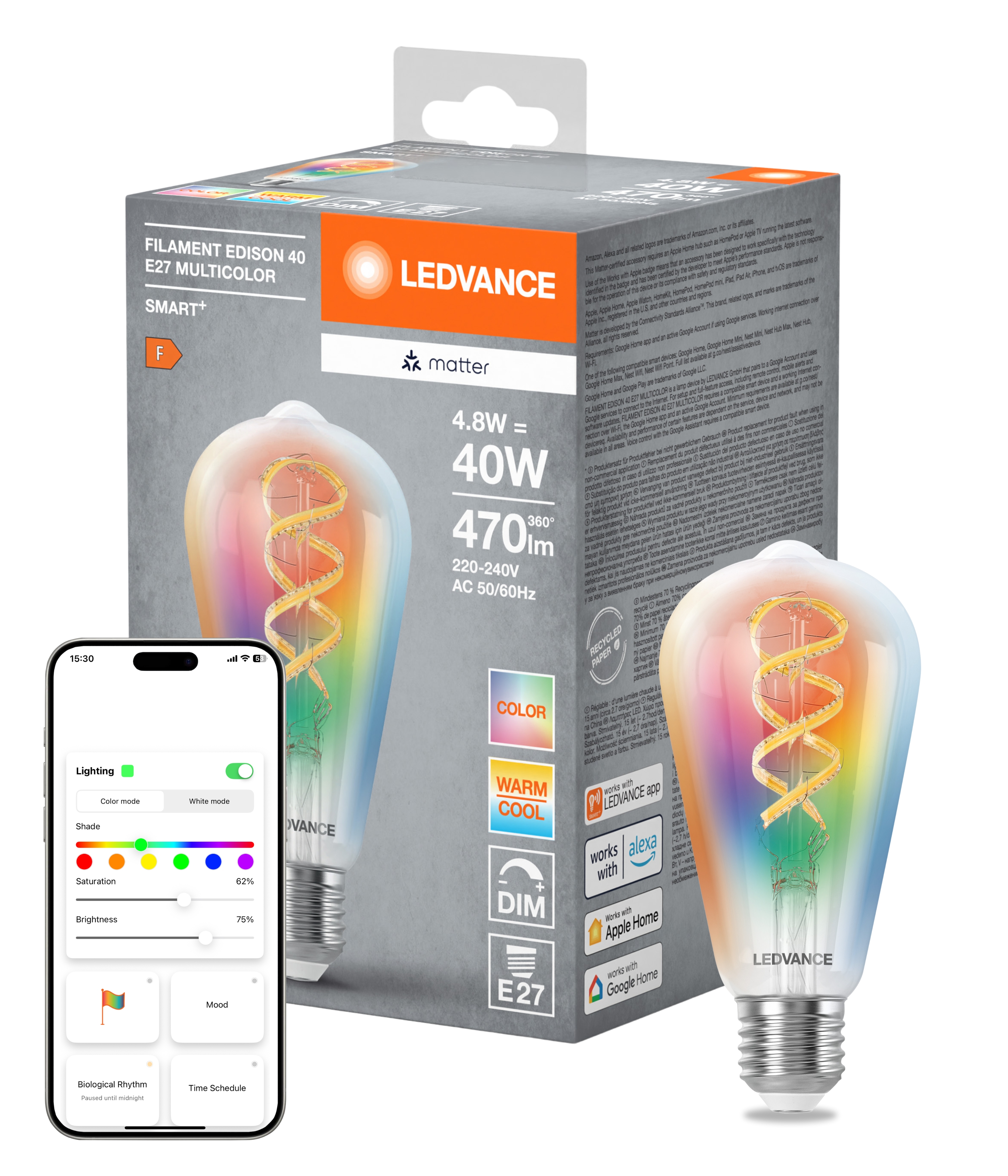 SMART+ MATTER Filament Multicolor Classic E40 4.8W E27