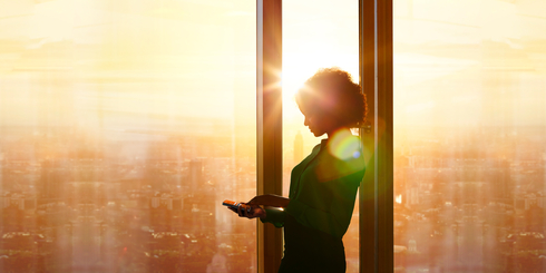 Businesswoman with smartphone with Matter application
