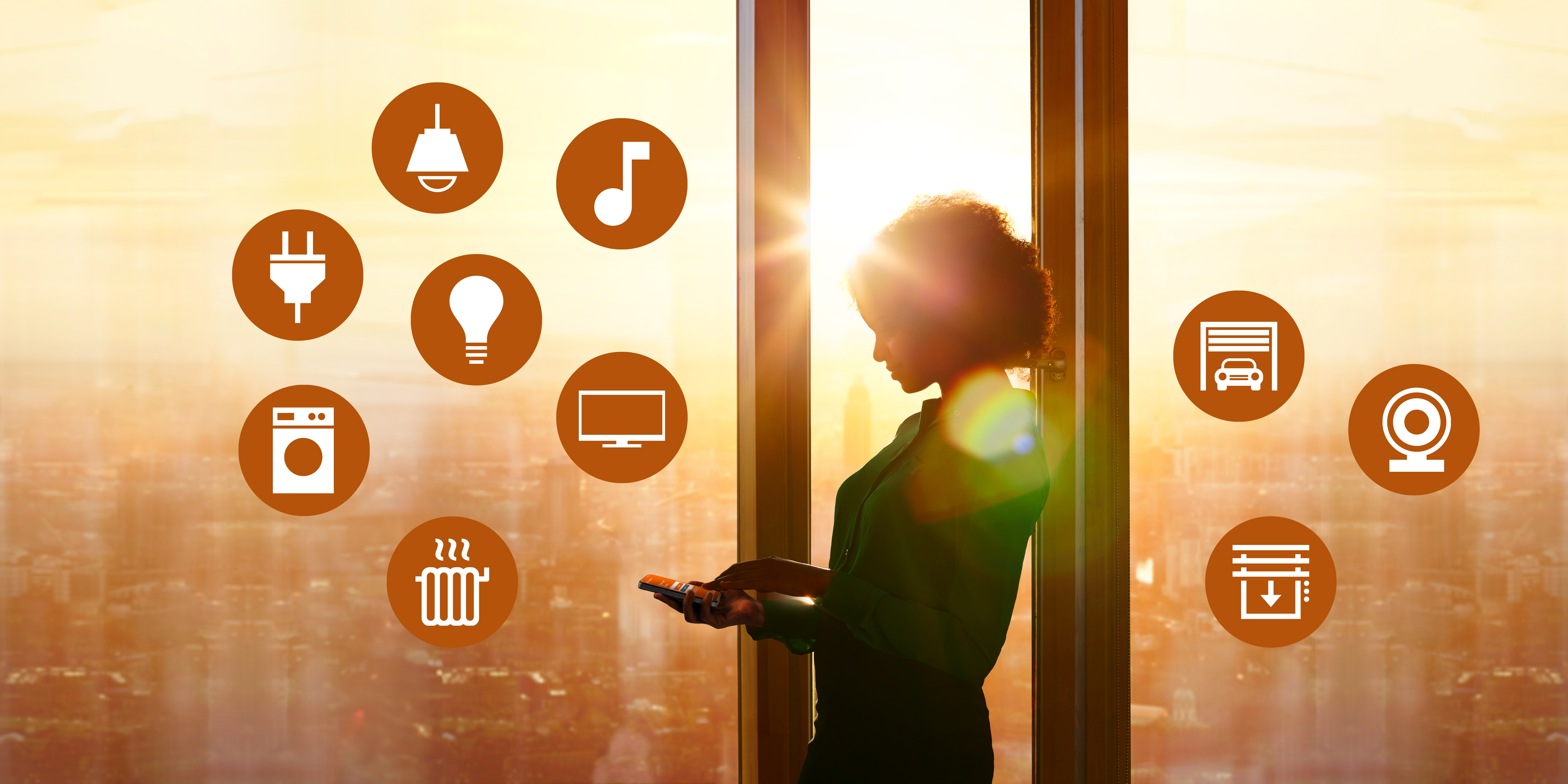 Smartphone with SMART+ App screen Set scenes and application EN